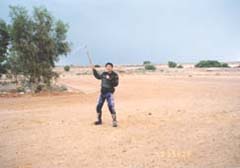 | 01 今後は銀行強盗になったOさん(^_^;; 02 砂丘の上からの風景 03 鞭を振るってみるが・・・うまくいかない・・・(T^T) 04 地平線をバックにみんなで記念写真 05 あの高台に登るの?まさかね? 06 町の夕闇・このあと街灯も何もなくて真っ暗に・・・ |