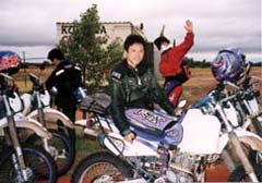 朝6時起床。今日もいつのもメニューを食べ、後かたづけをする。空は相変わらずどんよりしていて、今にも雨が降り出しそうである。今日から先導バイクはTさんに交代。舗装された道路を少し走った後、ダートコースへとはいる。このあたりから土の色がほんとに赤い色になってきた。ダートは結構深くてタイヤをとられてしまううえ、牛か何かの糞が山のように落ちていて、かわすのに苦労した。しばらく走ったところで休憩するが、一番後ろで走っていたM君がいくら待ってもやってこない。あまりに遅いので途中でこけたのかなあと言う話をしていた。待つこと約30分、やっとやってきた。どうやらエンジンの調子が悪くてPさんに見てもらっていたようである。みんなそろったところで出発する。 約1時間走り、みんなが休憩しているところにつく。ちょうどその手前に大きな水たまりがあり、Aさんが「つっこめ」とジェスチャーしていたが、さすがに入る勇気はなく水たまりを迂回していった。Tさんは中につっこんでいったらしい。この後、Oさんだけは水たまりにはいるというパフォーマンスを見せてくれた。彼曰く、「みんな入っていったと思ってた・・・」。最後にPさんがサポートカーで水たまりにつっこむし・・・。その後も何度も水たまりがあり、何とかよけながら進んでいく。どうやら前の日は結構雨が降っていたようである。しばらく走っていくと、前方に大きな岩(山?)が見えてきた。エアーズロックかと思ったが、どうやらこれは「マウント・コナー」と言われるものだったと思われる。(はっきりと分からなかった)写真を撮っていたら後ろのサポートカーに追いつかれ、あわてて出発することになった。 このマウントコナーが一望できるところで休憩をとる。Aさん、Oさんと3人で岩を持ち上げた写真を撮った。間抜けな奴らである・・・。(^^;; この後の数十キロでこの旅行のすべてのオフロードコースが終わりとなった。そして舗装された道路を進み、今日の昼食をとることになっている「CURTIN