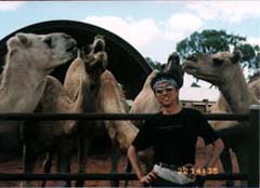 | 01 出発前、キャンプ場で 02 水たまりにつっこむTさん 03 3人でマウントコナーを持ち上げる(提供 Tさん) 04 びびりながららくだと記念撮影 05 サンセットポイントにて 06 日の暮れたサンセットポイントにて |