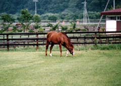 | 01 YHの前で今日の泊まり客と一緒に 02 マヤノトップガン(優駿牧場) 03 YHで飼われている子犬 |