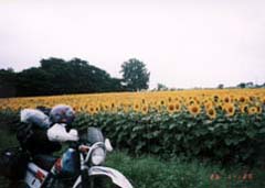 朝6時頃に起床、出発の準備を整え、7時頃に王将たちが出発するのを見送る。自分は7時半頃に宿をでて小樽フェリーターミナルへ見送りに向かう。二人とフェリーターミナルで話をしているとちらほらと旅を終えたライダーたちが現れてきた。さすがにこの時期に来るライダーはむちゃくちゃ少ない。フェリーに乗船するまで見送った後、早々に美瑛を目指す。と思って地図を見ようとするとなんと地図がない。どうやら宿に置き忘れているようだ。電話して確認してみると下駄箱の上に置き忘れているようだった。急いで取りに戻り、今度こそ本当に出発する。 国道5号線から337号線と上陸したときと同じ道を進んでいく。国道275号線に入ってひたすら北上していたが、札比内でひまわり畑を発見して写真を取ることにした。そんなに広い畑ではないが、見方によっては一面ひまわり畑である。そこから少し先にある浦臼町のホクレンで給油する。 国道275号線から38号線に入りひたすら富良野を目指す。道道70号線に入って林道を走るついでに富良野市内をさけていく予定であったが、ここも土砂崩れで通行止めだった。しかたなくそのまま38号線を南下していくことにしたが、そのさきのトンネルを抜けたところで突然大雨に遭遇してしまう。あわてて引き返してトンネル内で雨宿りする。しばらくやむのを待っていたが、結局カッパに着替えて再度出発することにした。局地的な雨だったらしく、2.3kmくらい走るともう道路が乾いていたが、まだ降りそうだったためカッパを着たまま走っていく。富良野市内に近づくと車の量が増えてきたため、すり抜けをしながら進んでいく。国道237号線に入ってしばらく走っていたが、さすがに暑さに耐えられなくなって、カッパを脱ぐことに。徒歩宿「遊岳荘」は新栄の丘に行く途中にあると書いてあったのでとりあえずそちら方面に向かう。もう着くという頃になって少し雨が降ってきたのであわてて走っていくと新栄の丘の手前に遊岳荘を発見する。 受付をして部屋へと案内される。宿にはあかつきさんから聞いていたヘルパーの吉野さんと永井さん、あと泊まり客のラッキーさんがいた。同室の3人はみんな連泊客で、ラッキーさん(Iさん)とマッキー、Nさんだった。荷物を片づけた後、とりあえず新栄の丘へ行ってみることに。やはり有名な展望地だけあってこんな天気にも関わらずかなりの人数がやってきていた。 しかし東の空はどんよりして今にも雨が降りそうである。とりあえず写真を撮ってそうそうに宿に戻ることにした。戻ってからは夕食の時間までビールを飲みながら漫画を読んでくつろいでいた。昨晩UFOキャッチャーでゲットしたミッキーマウスの時計はここの娘にあげることにした。かなり喜んでくれたのでよかった。(^_^) やっと夕食の時間になったので席について食事をとる。食後は談話室でビールを飲みながらみんなと語り合い、11時頃には就寝。 |