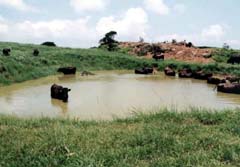 朝6時半に起きて、宿の周りを散歩。さすがに昨晩汗をかいて気持ち悪かったのでシャワーを浴びてさっぱりする。このとき衆議院の選挙があっていたが、通常の投票日は明日だが離島のため今日が投票日で、宿の前の公民館では有権者が投票に集まってた。7時半から朝食をとり、出発の時間までいつもの場所で他の泊まり客とビールを飲みながらくつろいでいた。 9時40分の高速船で石垣島に戻るので、9時20分にフェリー乗り場へと向かう。ここでNさんにまたあった。彼女は今日のフェリーで石垣島に戻るつもりらしく、時間までニシの浜で泳ぐつもりらしい。埠頭には昨日のダイビングで一緒だった女性がいたので高速船の到着まで彼女と話をしていた。ちょうどこのとき、ダイビングに向かうボートが出航していった。SMさんに手を振ったが気づいていたんだろうか?やってきた高速船に乗り込んで出発を待つ。最初は起きていたが、出航してすぐに眠ってしまって着くまで熟睡していた。やはり昨晩あまり寝られなかったせいだろう。石垣島に到着して、まずは旅行代理店に与那国までの航空チケットを購入しに行く。さすがにまだ十分開いているようである。時間はまだ早かったが、観光するところもないのでタクシーに乗って空港へ行き、搭乗時間を待つ。 空港はかなり人が一杯で座る場所もない。まだ宿を取っていなかったので「民宿はいどなん」に連絡を入れて宿を確保する。タラップから飛行機に乗り込むわけではなく、飛行機の所まで歩いていかなければならない。200人乗りくらいの小さなジャンボジェット機に乗り込んで出発時間を待つ。やっと飛行機が飛び立って一路与那国島を目指す。眼下に見える海の色はとてもきれいだった。予定よりも5分早く与那国空港に到着。歩いて到着口へと行くが、来ているはずの宿からの迎えがない。早く着いたため、まだ来ていないようだった。少し待っているとあわててやってくる女性が2名。どうやら「民宿はいどなん」のお迎えの人みたいだ。彼女らに案内されて車の所に行く。今日の泊まり客は全部で8名だったが、車は9名乗り。強引に10人乗って宿へと向かう。 しばらく走ってクブラ漁港の近くにある「民宿はいどなん」に到着した。さっそく手続きをしてから部屋へとはいる。レンタカーは各人で連絡するようになっていたので、与那国交通レンタカーに連絡を入れる。バイクでもいいかなと思っていたが、なしずく的に車をレンタルすることになった。車種や時間などは何も聞かず、いきなりそっちに持っていくと言うことになった。(^^;; しばらく宿の前で待っているとレンタカーショップの人がプリメーラに乗ってやってきた。路上でそのまま契約を済ませて24時間レンタルすることにした。傷のチェックなども全くしない・・・。車はかなりきれいだったが、走行距離が130,000kmと言うのはびっくり。まあ、壊れることはないだろう・・・。 レンタカーも借りたのでさっそく観光に向かう。まずは最西端の碑に行くため西崎へ。宿からすぐ近くと思っていたが、4km位離れたところだった。元々は歩いていこうと考えていたが、レンタルしてよかった・・・。(^_^) 港の横を抜けて岬を目指すが、現在道路を造っている最中らしく、「この道通れるんか?」というような道路を通っていくことになった。途中からはよく整備された道路になったが・・・。岬の先端へ続く道を登っていき、駐車場に車を止める。まだ観光客は誰もいない・・・。駐車場から少し歩いて最西端の碑に到着する。写真ではバックに海が見えていたが、沖縄サミットのため、碑の後ろには国旗がはためいていた。碑の所で写真を撮ってから、休憩所に行く。しばらくここからの海を眺めてから車の所に戻って出発。 南牧場の横を抜けて進んでいくと、道路にはいっぱい放牧された牛の姿があった。ついでにいっぱいの糞がまき散らされていたが・・・。(^^;; 途中でまだ道路ができていないのか、土砂崩れかはわからないが、メインの道路が通れないようにあっていたので、迂回路を進む。途中から完全な一車線で離合もできない感じの道路が続いていたが、対向車がこなかったのが救いである。しばらく走ると大きな道路にでたが、ここで曲がる方向を間違えてしまい、気が付くと宿の方に戻っていた。仕方ないので、また先ほどと同じ道を進んで、今度は反対側に曲がって東へと進む。暑さもピークに達してきてしゃれにならない・・・。さすがにこの格好でうろつくのをあきらめて一度宿に戻ることにした。ショートパンツとTシャツに着替えてからまた同じ道を走っていく。海岸線付近の道をひたすら走っていくとサンニヌ台という岸壁に立神岩という立岩を見下ろす展望台があったので寄っていく。眺めはいいが、風が強い・・・。この立岩、神威岬に似ている。反対側には遠くに東崎の灯台が見えていい感じ。 さらに走っていくと軍艦岩といわれる軍艦と言うより潜水艦のような形をした