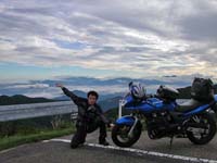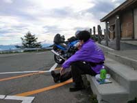 予定通り5時半に目を覚ます。さすがに睡眠時間十分といった感じですっきりだ。(^ー^* ) フフフフ 外を見るといい天気で、山の方にも雲はかかっていない。これならビーナスラインも大丈夫かな。美ヶ原林道を走っていくと展望台のような所に到着。(7時・23km)いったんここで休憩かな。山の所々に雲がかかっていてなかなかいい眺めだ。まだ朝早いせいか店も開いていないし、車も一台もいない・・・。おなかも空いてきたからここで朝食にしようと、昨日買ったおにぎりを食べる。天気いいねえ・・・ちょっと寒いけど。(^_^;; さすがにこのまま上に登っていくとさらに寒くなるだろうからもう少し着込んでいこう。 このさきの美ヶ原まで一気に行こうと思ったらその先から車両進入禁止・・・。あれ?(・_・?) ハテ? ・・・あっ!!ここって王ヶ頭やん!!( ̄△ ̄)